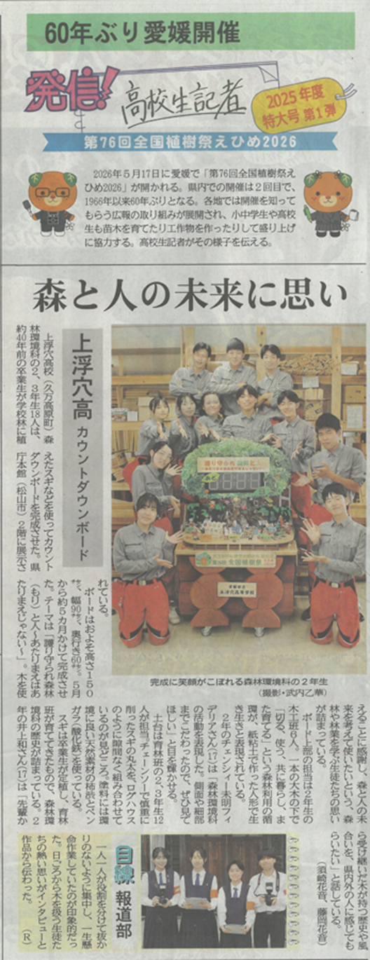 また、本校報道部が高校生記者としてそれを取材して記事を作り、愛媛新聞に掲載していただいていました。