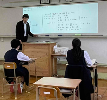 (電子黒板を用いた生徒2人の授業 令和7年)