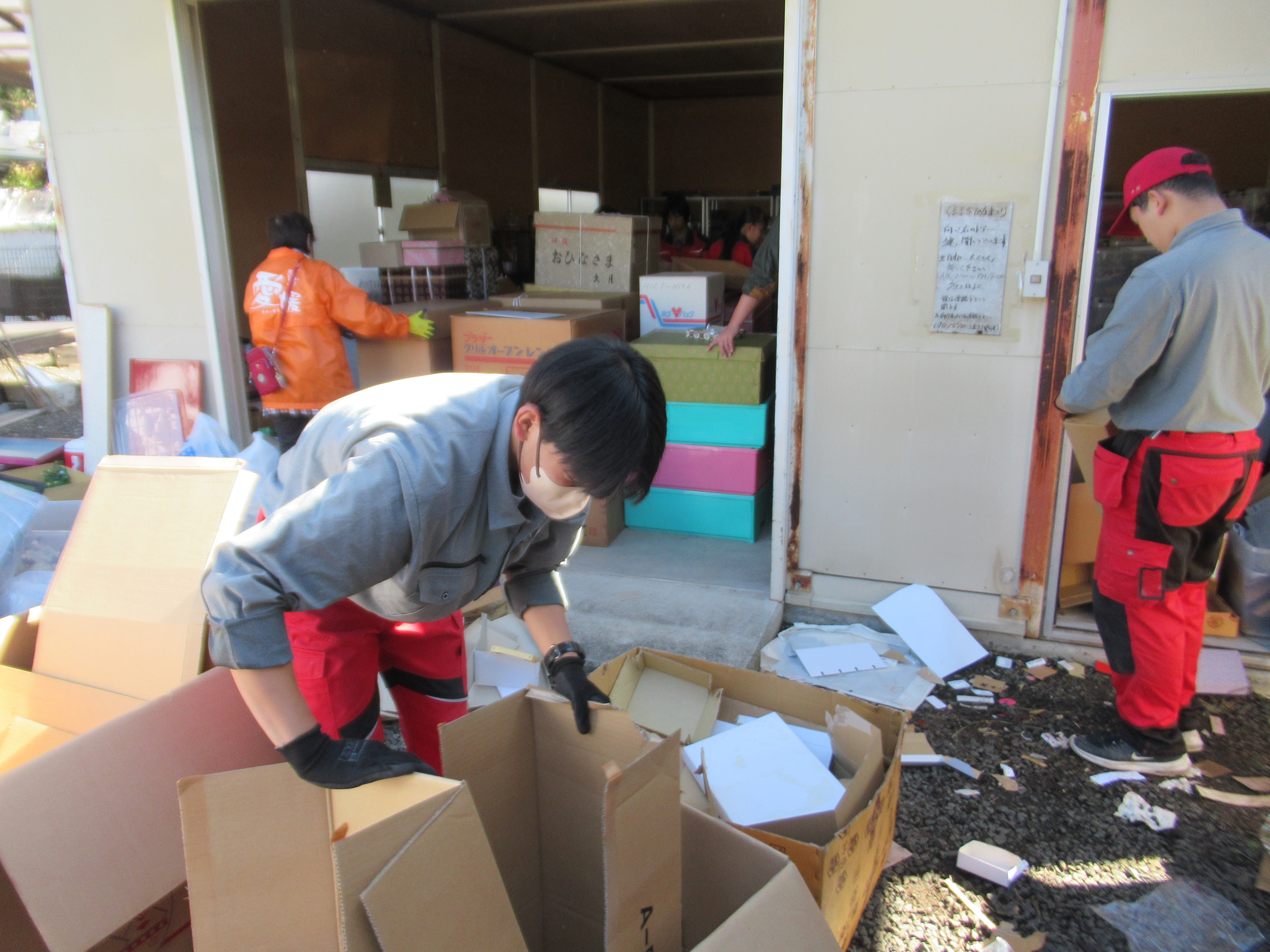 紙ごみ、段ボールごみ、燃えるごみ、粗大ごみに分類してまとめ、車に積み込みました。